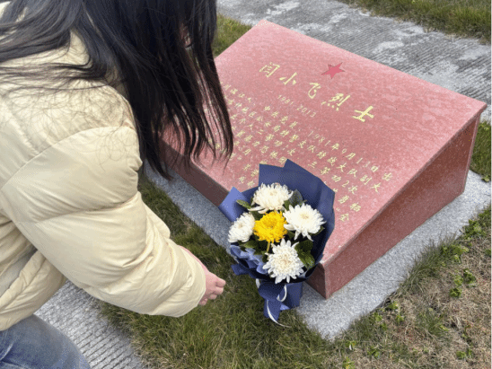 图为团队成员向烈士献花