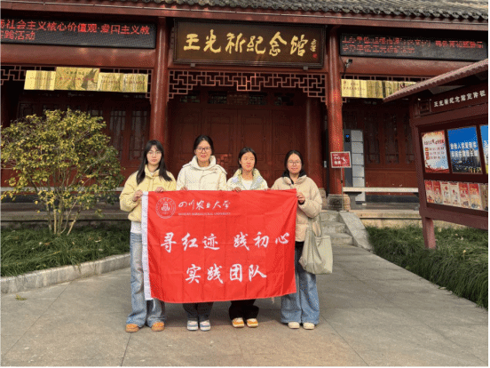 次日,团队赴王光祈纪念馆开展深度研学。成员们通过实物展品、场景复原等多元形式,全面学习这位温江籍音乐学家、社会活动家的成长历程、学术成就与社会贡献,深刻感悟其胸怀家国、勇于探索的爱国精神与钻研精神。团队成员围绕“王光祈精神的当代意义”等主题采访了周边老党员,撰写短篇感悟,在学思践悟中深化对本土红色文化的认同。