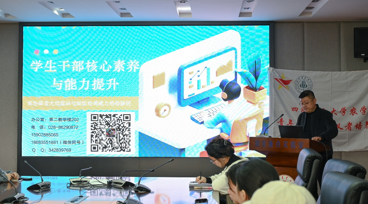11月11日,农学院于第二教学楼201举办了第五期“青马班”第三次理论课程培训。农学院党委办公室主任、团委书记马保欣担任主讲。